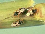 The turfgrass scale, is a new pest. Which has been found during the past several years in lawns. Adult scale is light tan in color with two dark stripes running parallel down their backs and measure about 1.5 mm wide and 2.5 mm long. The adults survive in the thatch layer and may cause minor damage. Large areas of your lawn may appear wilted and brown in color and does not respond to watering. Nymphs (young scale) appear in the late spring and summer and increase the damage as they are feeding off the grass. They look like pink pinhead size dots and are frequently spotted in large numbers clinging to grass blades.