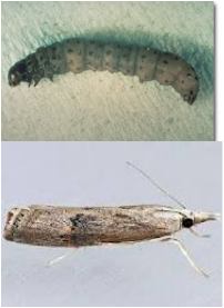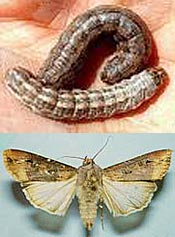 The sod webworm moth is small (1/2 inch long) and whitish-gray. They clasp or roll their wings close to their bodies when resting and have mouth parts projecting forward from the head like a snout. The moths are usually noticed when flushed out by people walking. They fly in a jerky zig zag manner and quickly return to the grass to hide. Around dusk, they may be seen flying a few feet above the grass and dropping their eggs. In a few days, these eggs and others laid on the lower parts of the grass stems hatch into small caterpillars. It is the caterpillar that damages the grass. The caterpillars generally have dark heads and rows of light-brown spots arranged in rings around the greenish-gray bodies. They live near the soil surface in silken shelters covered with bits of grass. The larvae clip off grass blades close to the ground and pull them back into their silken 'runways'. After several weeks of feeding they change into pupae and soon emerge as moths. Sod webworm can damage an area of lawn about the size of a softball. If the infestation is severe, the spots may coalesce into much larger areas. Wait 7 to 14 days after seeing peak moth flights and look for damage to the turf. Realize that an abundance of moths does not automatically mean damage. Also look for large numbers of birds, particularly starlings, pecking holes in the lawn looking for caterpillars. Control measures should be considered when you find 2 to 4 webworms per square foot of sod.